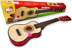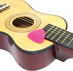 Harmonisch klingende Gitarre, ideal für kleine Musiker, hergestellt aus leichtem und robustem Holz. Enthält 6 stimmbaren Saiten und wird mit einem Plektrum geliefert.
