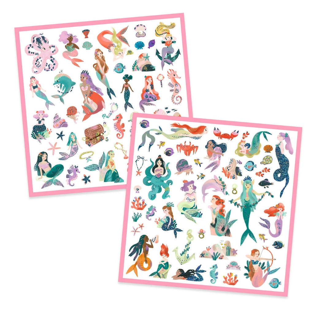 Ein zauberhaftes Set an Meerjungfrauen-Stickern der Marke DJECO, das Kinder mit zarten Illustrationen und einfacher Anwendung begeistert. Ideal zum Verzieren von Heften, Karten und für kreative Projekte, fördert Kreativität und Feinmotorik. Perfekt als Geschenk oder kleine Belohnung.