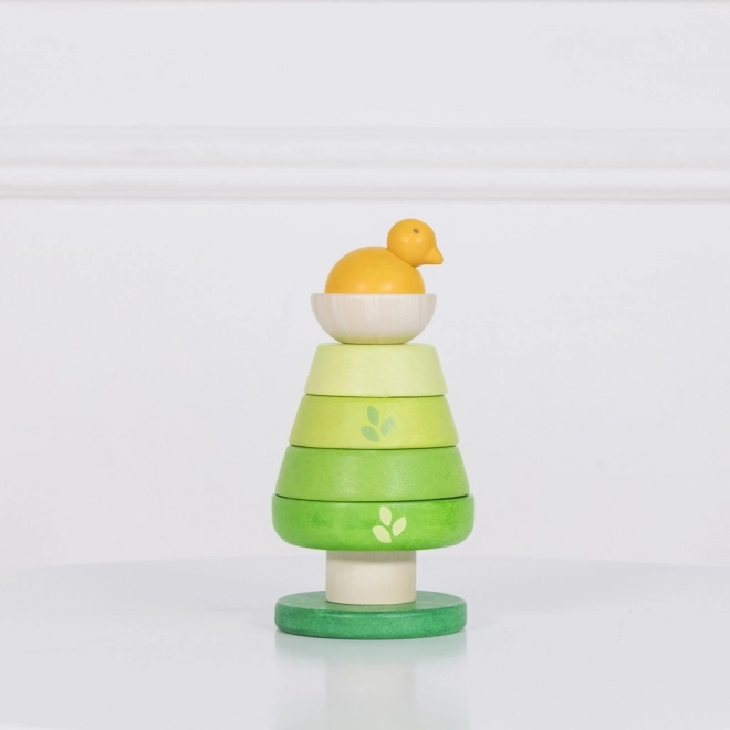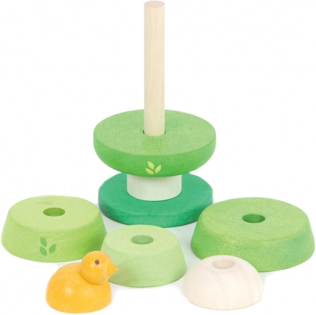 Entdecken Sie ein hochwertiges Steckspiel in Baumform mit einem niedlichen Vögelchen an der Spitze. Teile in unterschiedlichen Grüntönen motivieren Kinder zur Unterscheidung von Farben und Formen, während die stabile Basis sicheres Spielen gewährleistet. Dank der flexiblen Stange ist das Stapeln komfortabel und auch für die kleinsten Händchen schonend.