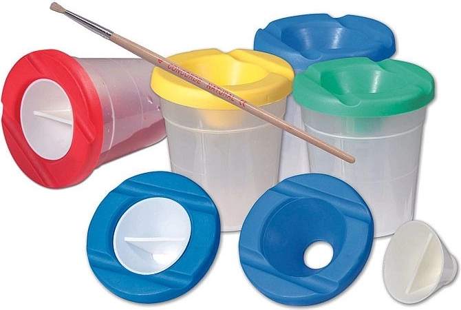 Suchen Sie einen sicheren und strapazierfähigen Becher für kleine und große Künstler? Der Wasserbecher CONCORDE mit einer Höhe von 9 cm minimiert Kleckereien beim Malen – wird er bis zur Markierung befüllt, bleibt das Wasser auch beim Umkippen im Inneren. Zwei praktische Rillen ermöglichen das bequeme Ablegen der Pinsel während der Arbeit.