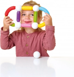 Der magnetische Baukasten SmartMax Start Plus ist die ideale Wahl für kleine Entdecker. Das Set enthält 30 Teile, darunter lange Stäbe, mittlere Stäbe, Kurven und Verbindungskugeln, die den Aufbau einfacher und komplexer Konstruktionen ermöglichen. Kinder können verschiedene 2D- und 3D-Formen und Bauwerke wie Türme oder Brücken ausprobieren.