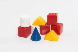 Entdecken Sie ein spielerisches Set aus 9 bunten Kunststoffbausteinen für die Kleinsten, das die Feinmotorik, die Fantasie und die Kreativität fördert. Vier Farben und vier Formen sorgen jeden Tag für viel Spaß – Burgen bauen und eigene Kreationen gestalten begeistert Jungen wie Mädchen. Hergestellt in Tschechien aus hochwertigem, unbedenklichem Kunststoff, geeignet ab 6 Monaten.