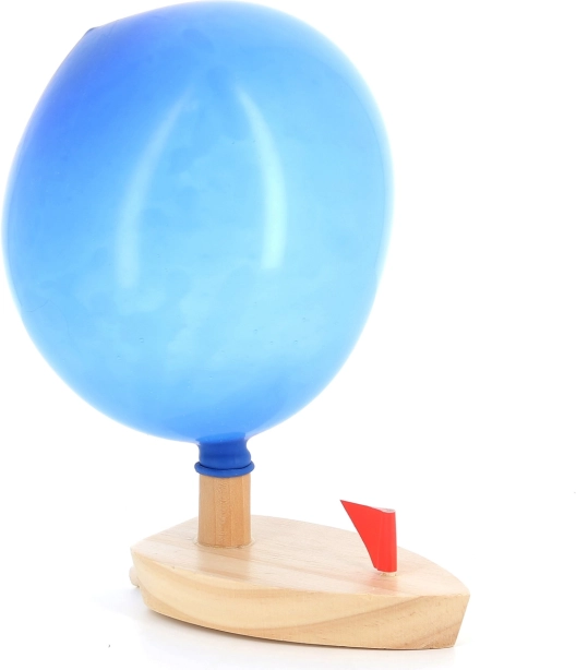 Holzboot mit Ballonantrieb ist eine unterhaltsame und kreative Möglichkeit, Kindern die physikalischen Prinzipien der Bewegung näherzubringen. Der Ballon liefert den Antrieb, wodurch das Boot auf dem Wasser fahren kann.