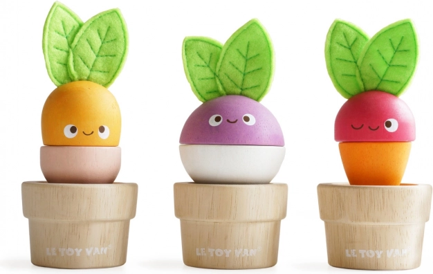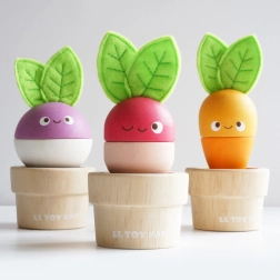 Das bezaubernde Set aus Holz-Blumentöpfen mit Gemüse von LE TOY VAN fördert Feinmotorik, Hand-Auge-Koordination und Vorstellungsvermögen. Kinder können die einzelnen Teile zu Karotte, Radieschen und Roter Bete mischen und zusammenstecken oder eigene Kombinationen kreieren. Das Spielzeug besteht aus nachhaltigem Holz, hat Filzblätter und ist von Hand nachbemalt mit ungiftigen Farben auf Wasserbasis.