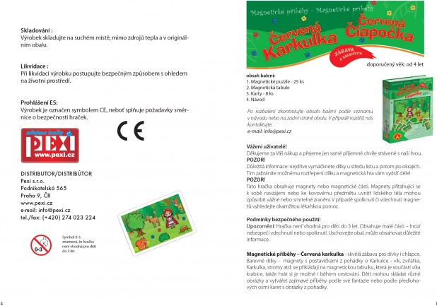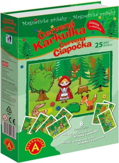 25 Magnetteile, Magnettafel, 8 Geschichtenkarten, Anleitung auf Tschechisch und Slowakisch