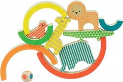Kreatives und buntes Balance-Spielzeug aus Naturholz, das die Fantasie von Kindern und ihre motorischen Fähigkeiten fördert. Genießt stundenlangen Spaß beim Turmbauen mit farbigen Tierchen und Regenbogen-Elementen.