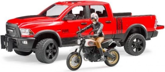 Das stylische Motorrad passt auf die Ladefläche des Pick‑ups und erweitert die Spielmöglichkeiten. Ideal für den Transport zu Rennen und auf Abenteuer‑Touren.