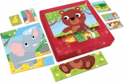 Das Progressive Puzzle Tierbabys 8 in 1 von LISCIANI begeistert mit wunderschönen Illustrationen und einem cleveren Puzzlesystem. Das Set enthält eine quadratische Kunststoffbox mit neun Rahmen-Ebenen, mit denen Kinder die Bilder Schritt für Schritt vom einfachsten bis zum schwierigsten zusammensetzen. Die Teile sind gerade, ohne klassische Puzzle-Verriegelungen, was die Handhabung selbst für die Jüngsten erleichtert.