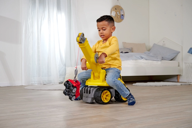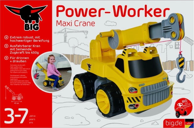 Der BIG Power Worker Maxi-Kran ist ein stabiles Rutschfahrzeug aus hochwertigem, robustem Kunststoff, ausgelegt für Langlebigkeit und sicheren Spielspaß. Der Kranturm dreht sich um 360° und der bewegliche Ausleger lässt sich leicht bedienen, sodass Kinder Gegenstände mithilfe der leistungsstarken Seilwinde mit einer Zugkraft von bis zu 450 g heben und versetzen können.