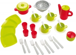 Praktisches und unterhaltsames Teeservice- und Geschirrset für Kinder, ideal zum Spielen und zur Entwicklung von Fähigkeiten. Das Set enthält vollständige Ausstattung, die Ihr Kind für sein eigenes Gasthaus benötigt.