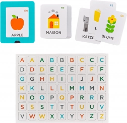 Entdecken Sie spielerisches Alphabet-Lernen mit dem mehrsprachigen Set von Petit Collage. Kinder lernen Buchstaben und Grundwortschatz auf Englisch, Deutsch, Spanisch und Französisch – anhand übersichtlicher Karten und magnetischer Buchstaben, die sich leicht anordnen und immer wieder verwenden lassen.