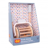 Diese wunderschön gearbeitete Musikrolle aus 100% FSC® Holz fördert nicht nur die Motorik, sondern auch die sensorischen Fähigkeiten Ihrer Kinder. Durch die Bewegung und den Klang der Glocke, die zwischen den Holzstäben schwingt, entwickelt das Kind seine Hörfähigkeiten. Das Spielzeug kombiniert natürliches und buntes Holz, wobei die Farben die visuelle Wahrnehmung anregen.