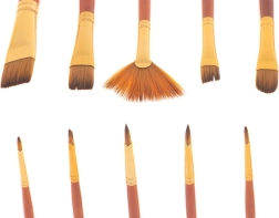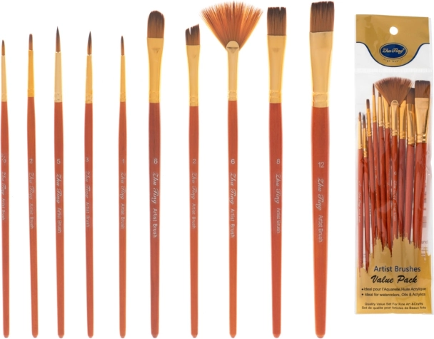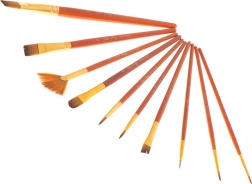 Das Set enthält 10 Künstlerpinsel, die für den Einsatz mit verschiedenen Farbtypen geeignet sind. Dank der Spitzen in unterschiedlichen Dicken ist es einfach, komplexe Formen zu erstellen, und die dünnen Pinsel ermöglichen es Ihnen, Ihr Werk bis ins Detail zu verfeinern. Jeder Pinsel ist mit einer Nummer versehen, was die Auswahl der geeigneten Größe erleichtert.