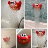 Einfach die ON-Taste drücken und die Krabbe spuckt Schaum aus, begleitet von einer fröhlichen Melodie – die perfekte Motivation, damit Kinder das Baden lieben.