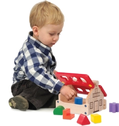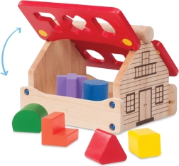 Dieses Holz-Steckspiel in Hausform ist mehr als nur ein Spielzeug. Kinder genießen nicht nur Spaß, sondern auch Lernen. Das Häuschen mit aufklappbaren Dachteilen dient als Stauraum für kleine Gegenstände und ist dadurch nicht nur funktional, sondern auch praktisch. Das Steckspiel ist aus widerstandsfähigem Massivholz gefertigt, das natürliche Optik mit attraktiven Farben verbindet.