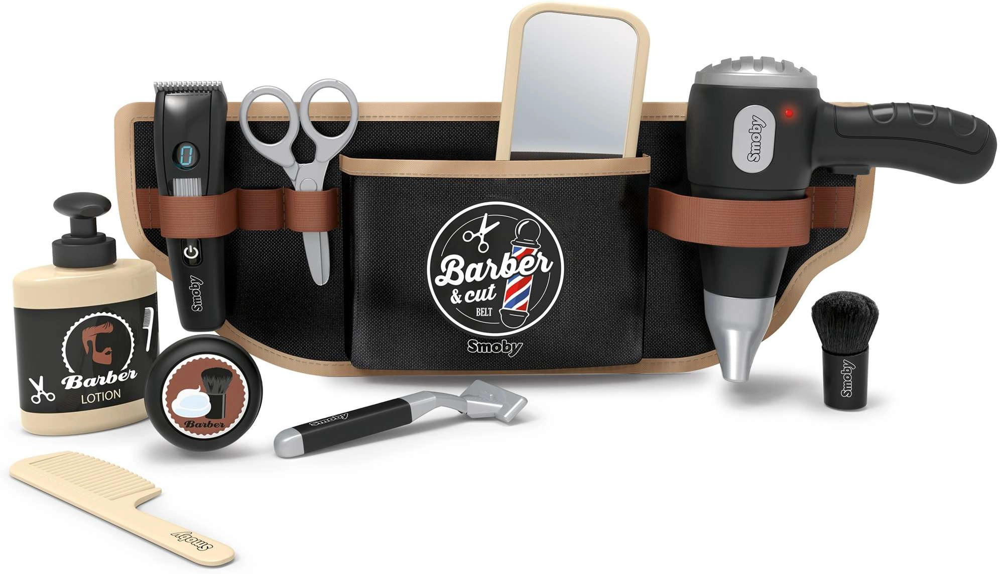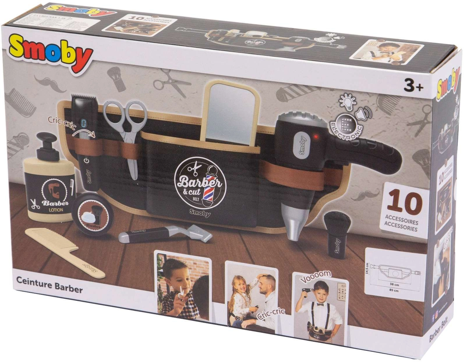 Der Friseur-Gürtel für Kinder Smoby myBeauty macht jeden Tag zu einem lustigen Salon-Abenteuer. Dank des verstellbaren Gürtels sind alle Utensilien sicher verstaut und immer zur Hand – vom Föhn über die Schere bis hin zu Kamm und Rasierer. Der interaktive Föhn erzeugt realistische Geräusche, sodass das Spiel wie echt wirkt.