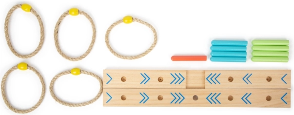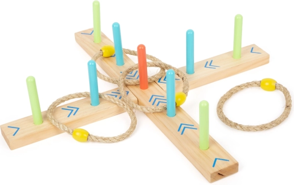 Wurfringe ist ein unterhaltsames Familienspiel, das Geschicklichkeit und Koordination verbessert. Die Basis ist aus 100% FSC® zertifiziertem Holz gefertigt, was eine nachhaltige und umweltfreundliche Herkunft der Rohstoffe garantiert. Dank der bunten Pfeile auf der Basis können Kinder die Punkte leicht zählen, ohne Zahlen kennen zu müssen. Ein tragbares Baumwollsäckchen für einfache Lagerung gehört zum Lieferumfang.