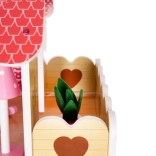 Das Puppenhaus enthält LED-Beleuchtung, die nach den Wünschen des Kindes platziert werden kann, um den Zauber der imaginären Welt zu verstärken. Es ist in drei Ebenen aufgeteilt, die durch wunderschöne weiße Treppen verbunden sind, und bietet fünf Zimmer sowie einen Balkon, was ausreichend Platz für eine vierköpfige Puppenfamilie bietet.