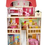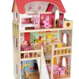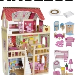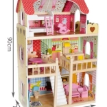 Das Puppenhaus erreicht eine Höhe von 90 cm, was es zu einem der größten auf dem Markt macht. Es ist aus robustem Holz gefertigt, das Stabilität und Sicherheit beim Spielen gewährleistet.