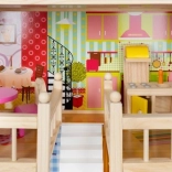 Bunte Gestaltung des Puppenhauses regt die Fantasie der Kinder an, ist dabei aber sanft für die Augen, was lange sorglose Spielstunden garantiert.