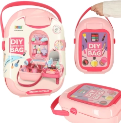 Kosmetik-Set im tragbaren Koffer für kleine Fashionistas und angehende Friseurinnen bringt viele Accessoires für kreatives Spiel: Haartrockner, Kamm, Spiegel, Haarklammern, Ringe, Armbänder sowie bunte Fläschchen. Der Koffer hat ein transparentes Fenster zur Personalisierung – Bild oder Namen des Kindes einlegen und ein einzigartiges Set für Rollenspiele schaffen. Ideal zur Förderung der Feinmotorik und sozialer Fähigkeiten. Enthält keine echte Kosmetik.