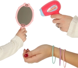Der kindgerechte Kunststoff-Föhn und der niedliche Spiegel regen die Fantasie an und sorgen für ein authentisches Spielerlebnis – sicher und ohne echte Kosmetik.