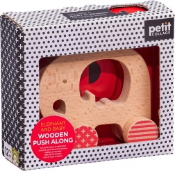 Das Spielzeug fördert Fähigkeiten beim Ziehen und Schieben, trainiert den Griff und das räumliche Vorstellungsvermögen dank des Elefantenbabys, das in die Öffnung in der Mitte eingesetzt wird. Die robuste Konstruktion aus massiver Buche gewährleistet eine lange Lebensdauer und einfache Pflege.