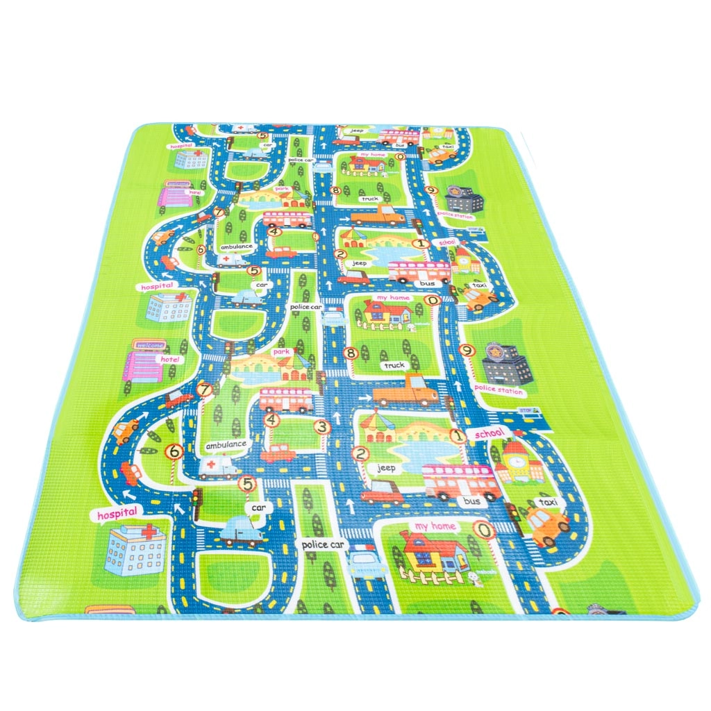Die Matte isoliert gegen Kälte und dämpft Stürze. Ihr Kind kann sicher auf dem Boden spielen. Ein perfektes Accessoire für das Kinderzimmer, das das Spielen jedes Kindes bereichert. Die Unterseite der Matte hat eine Schicht aus Wärmeisolierfolie, sodass Sie sie in den Garten oder an den Strand mitnehmen können.