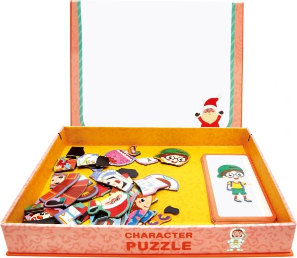 Das magnetische Figurenpuzzle bietet doppelten Spielspaß: Kinder können nach Vorlagen legen oder ihrer Fantasie freien Lauf lassen und originelle Kombinationen schaffen. Die Magnetteile haften sicher am Deckel der Box, sodass sich damit zu Hause wie auf Reisen bequem spielen lässt.