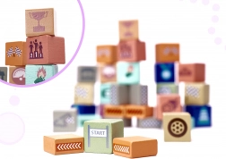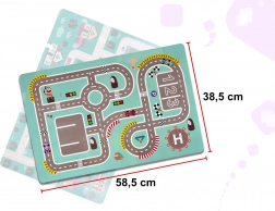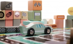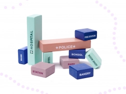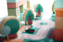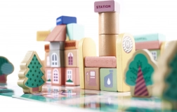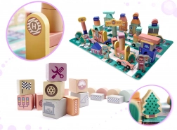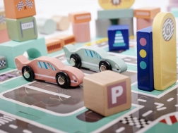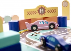 Jede Stadt braucht Straßen und Autos – und dieses Set enthält Puzzles, die zusammengelegt eine Spielfläche mit einer Strecke bilden. Sie finden verschiedene Elemente wie Gebäude, Figuren und Fahrzeuge. Die Bausteine sind in Pastellfarben gehalten, was nicht nur die visuelle Wahrnehmung des Kindes, sondern auch sein logisches und unkonventionelles Denken anregt.