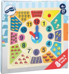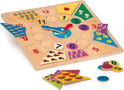 Das hölzerne Zahlenpuzzle „Lerne die Uhr“ ist ein spielerisches Lernmittel, mit dem Kinder leicht das Ablesen der Uhrzeit und das Erkennen von Mengen verinnerlichen. Herausnehmbare Zahlenteile werden an die richtige Stelle zurückgelegt und fördern so Konzentration und Hand-Auge-Koordination.