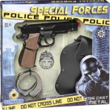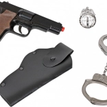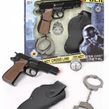 Metall-Polizeipistole, Polizeiabzeichen, Pistolenholster, Handschellen