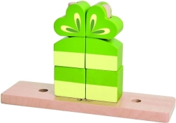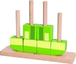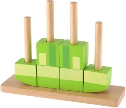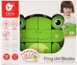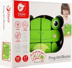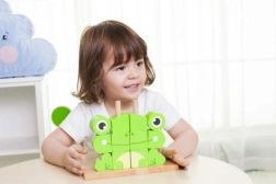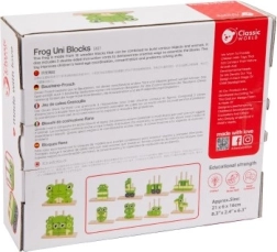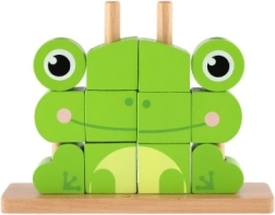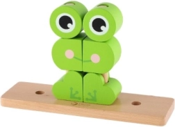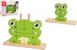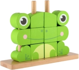 Das Holzpuzzle 'Frosch' ist ein kreatives Spielzeugset, das aus 17 Teilen besteht, darunter 12 Holzblöcke, eine Basis und 4 Stäbchen. Diese Teile können vielfältig auf der Basis mit Stäbchen aufgebaut werden, sodass Kinder ihre eigenen Gegenstände und Tiere kreieren können. Highlights des Produkts: