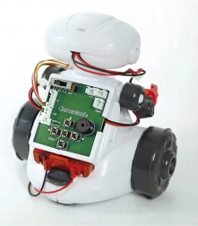 - Leiterplatte, Elektromotoren, IR-Sensoren, Mikrofon, Batteriebox, LED, Magnet, Reifen, Kopf, Rumpf, Arme, Räder, Magnethalterung, Stifthalterung, Schrauben, Zielscheibe, illustrierte Anleitung (CZ/SK/PL/HU)