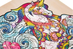 Entdecken Sie das hölzerne Konturenpuzzle mit Einhorn-Motiv von GRAFIX, das Kinder wie Erwachsene begeistert. Es erwarten Sie 130 Teile in unterschiedlichen Formen, eine Grundplatte mit Konturen für leichteres Puzzeln und ein Ständer zum Präsentieren des fertigen Bildes.
