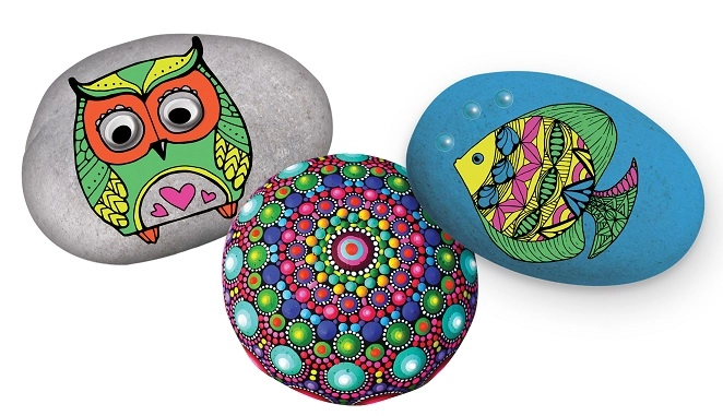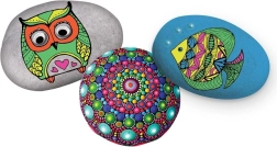 Die einfache Anwendung überzeugt Anfänger wie Fortgeschrittene. Glatte Steine lassen sich hervorragend bemalen, mit dem Pinsel gestalten Sie Flächen und mit dem Holzstab präzise Punkte, Linien und Mandala-Muster. Fertige Steine eignen sich als originelle Dekoration, Talisman oder Geschenk.