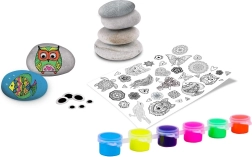 Dieses komplette Kreativset verwandelt gewöhnliche Steine in leuchtende Dekorationen. Dank der Neonfarben kommen Ihre Motive sowohl bei Tageslicht als auch unter UV-Licht zur Geltung, während Transferaufkleber und selbstklebende Augen Ihren Werken Charakter verleihen. Alles Nötige in einem Set – einfach öffnen und loslegen.