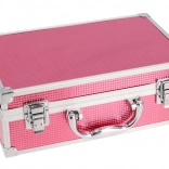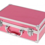 Kosmetikkoffer mit Aluminiumrahmen Marry Berry mit integriertem Spiegel – insgesamt 38 Zubehörteile. Enthält 18× Lidschatten, 2× Rouge, 1× Highlighter, 1× Augenbrauenwachs, 2× Lipgloss, 3× Nagellack, 1× Mascara, 1× Kajalstift, 1× Lipliner, 2× doppelseitigen Applikator für Lidschatten, 1× doppelseitigen Applikator für Augenbrauen, 1× Rougepinsel, 1× runden Spiegel und 1× Mini-Make-up-Schwämmchen. Dermatologisch getestet, entspricht den strengen EU-Normen.
