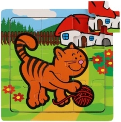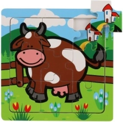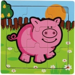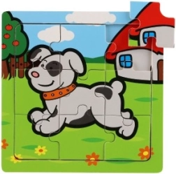 Das Puzzle besteht aus hochwertigem Holz, das Haltbarkeit und ein angenehmes Gefühl beim Handhaben bietet. Neun Teile sind auf einer Holzplatte mit gefräster Kante platziert, was das Puzzeln erleichtert und hilft, die Teile an Ort und Stelle zu halten.