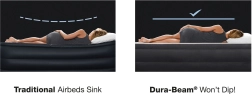 Das aufblasbare Bett Intex Deluxe ist eine hervorragende Wahl für Gäste, Ferienwohnungen und den Urlaub. Die erhöhte Konstruktion von 46 cm erleichtert das Aufstehen, und die weiche, beflockte Oberfläche sorgt für ein angenehmes Gefühl sowie sicheren Halt des Spannbettlakens. Die inneren Verstärkungen Fiber-Tech aus robusten Polyesterfasern halten die Matratze fest und formstabil, während das Dura-Beam-System das Gewicht gleichmäßig verteilt und eine korrekte Ausrichtung der Wirbelsäule unterstützt.