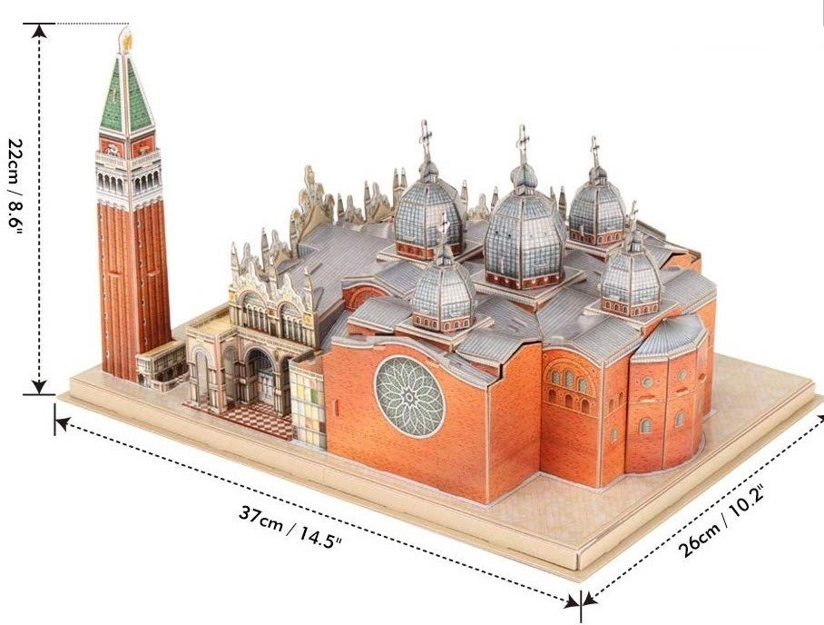 Entdecken Sie den Zauber Venedigs mit dem detailreichen Bausatz des Markusplatzes. Das 3D-Puzzle CUBICFUN aus der National Geographic Edition besteht aus speziellem, mehrschichtigem Schaum, der mit laminiertem, bedrucktem Papier überzogen ist und so für schöne Farben und lange Haltbarkeit sorgt. Die Teile sind vorgestanzt – einfach herausdrücken und gemäß Anleitung zusammensetzen.