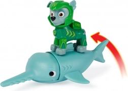 Rocky im nagelneuen Neoprenanzug und sein treuer Freund, der Sägefisch. Setze Rocky auf die Rückenflosse des Sägefischs, schiebe den Sägefisch nach vorne, um die Kopfbewegungen zu aktivieren, und starte zur Rettungsaktion. Geeignet ab 3 Jahren.