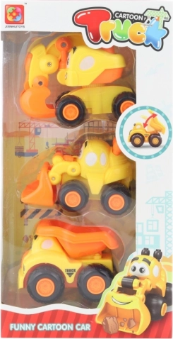 In der Packung finden Sie drei beliebte Maschinen – Bagger, Radlader und Kipper. Jedes Fahrzeug hat sanfte Formen, die für kleine Kinder geeignet sind, und ist für sicheres Spielen ab 12 Monaten angepasst.
