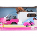 Entdecken Sie ein komplettes Spielset für kreatives Spielen: ein Puppenauto mit Anhänger und Pferd. Dank der großzügigen Größe und des strapazierfähigen Kunststoffs eignet sich das Set für den täglichen Einsatz zu Hause und im Freien. Kinder können das Pferdchen leicht verladen, zu Turnieren oder Ausflügen aufbrechen und dabei Fantasie sowie Feinmotorik fördern.