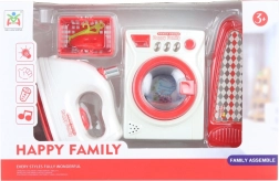 Entdecken Sie das unterhaltsame Kinderset mit Haushaltsgeräten Happy Family, das Kindern die Welt der Hausarbeit spielerisch näherbringt. Das Set enthält eine Waschmaschine, ein Bügeleisen, ein Bügelbrett und einen Wäschekorb. Realistische Elemente, Lichter und Geräusche fördern die Entwicklung der Vorstellungskraft und das Rollenspiel. Ideal für Kinder ab 3 Jahren.
