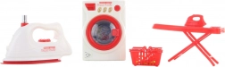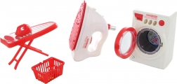 - Komplettes Wäscherei-Set: Waschmaschine, Bügeleisen, Bügelbrett und Wäschekorb