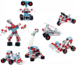 Baue Fahrzeuge, Roboter und weitere Konstruktionen. Eine Anleitung ist enthalten, die Schritt für Schritt durch den Bau von bis zu 10 verschiedenen Modellen führt.