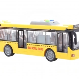 Dieser Kunststoff-Schulbus in ikonischem Gelb vermittelt Kindern ein realistisches Erlebnis des Stadtverkehrs. Dank der Licht- und Soundeffekte und des Schwungradantriebs eignet er sich hervorragend für kreative Spiele und die Förderung der Fantasie.