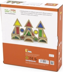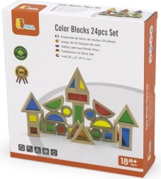 Das Set aus 24 bunten Holzbausteinen von Viga ist für Kinder ab 18 Monaten konzipiert. Dieses lehrreiche und unterhaltsame Produkt fördert die Kreativität und Feinmotorik von Kleinkindern und ist dabei sicher für die Kleinen.