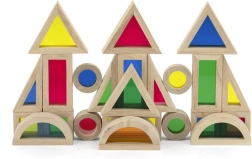 Die Bausteine sind in verschiedenen Formen und Farben erhältlich, die das Erkennen von Farben und Formen sowie die visuelle Wahrnehmung fördern.